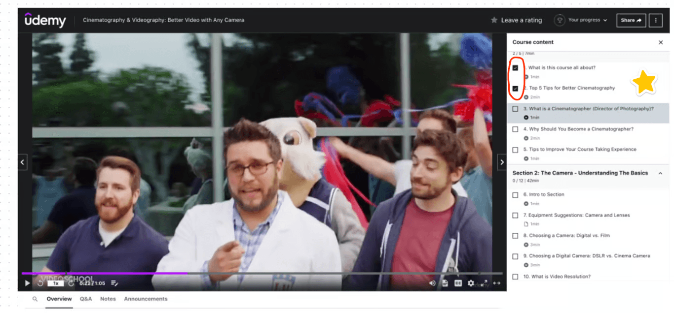 Judging from Udemy, students will see a history of which learning videos they have watched and the duration of each video.