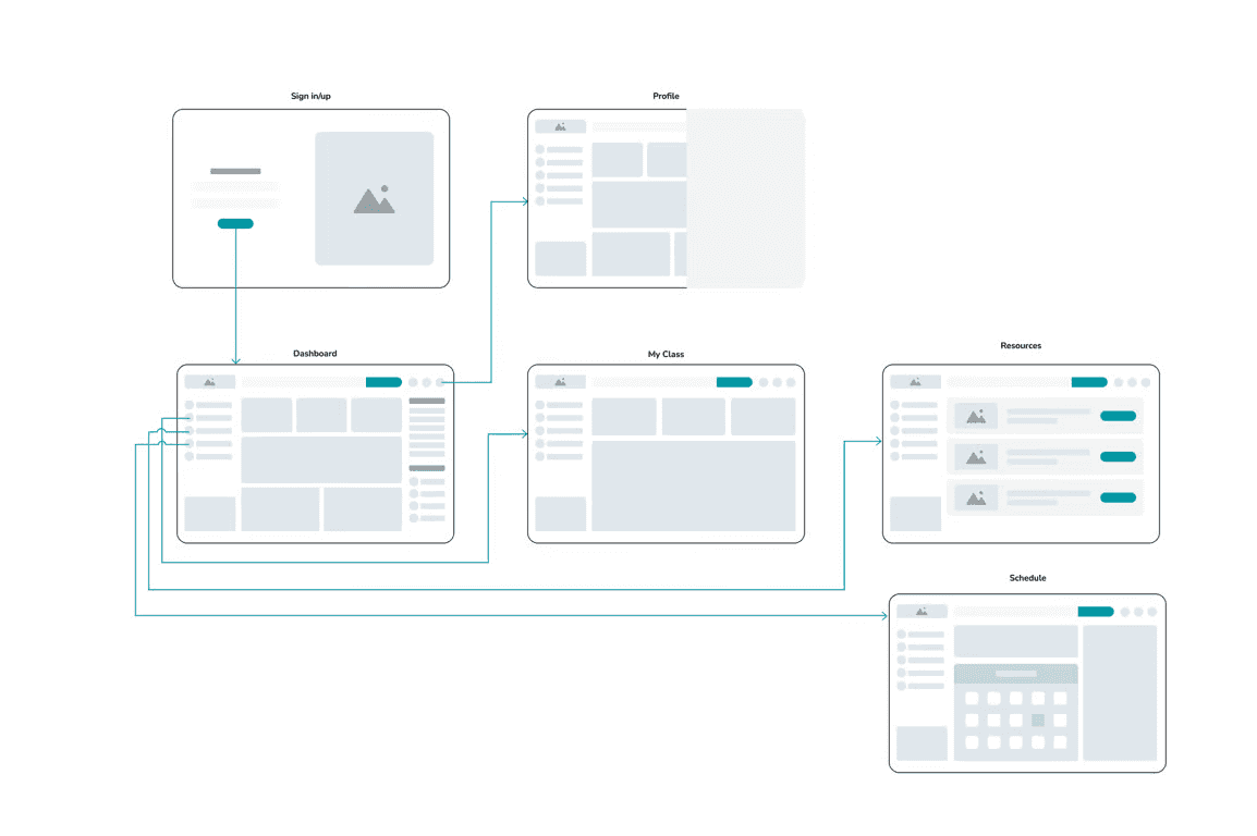 After finishing determining the sitemap and user flow of the Student Dashboard, I then made a rough sketch in the form of a wireframe to estimate what visual asset needs I would need later in the High Fidelity stage.