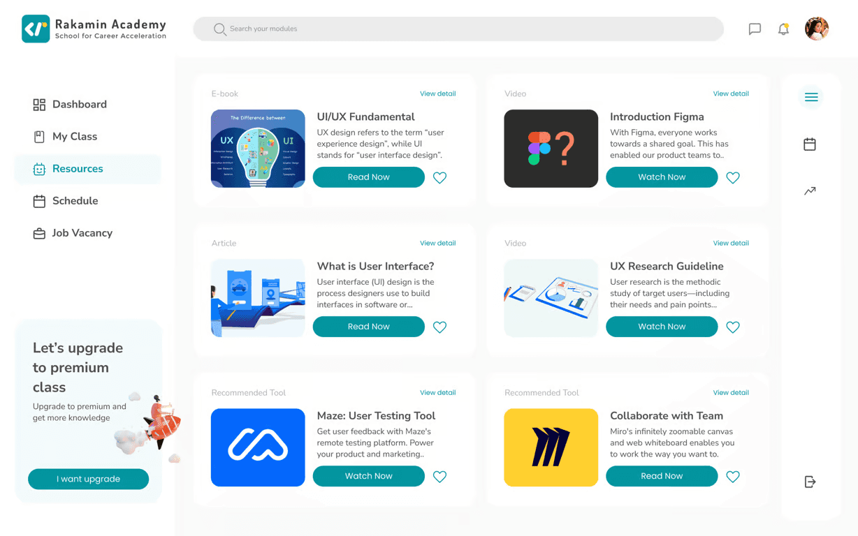 They also provide #RoadmaptoFuture, where students can find out what classes they need to take when students want to change their career to a certain job, for example a student wants to have a career in the field of UI Designer, the student can choose the Roadmap 'Become User Interface Designer'.