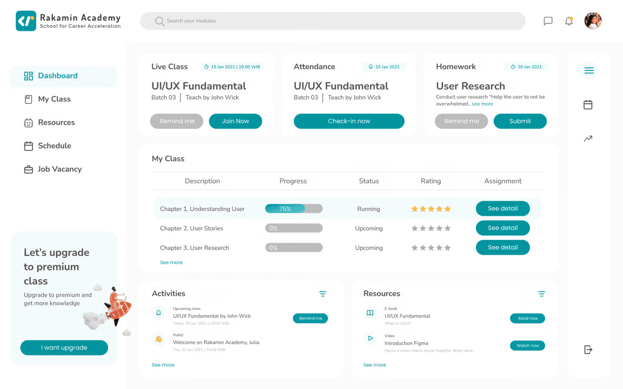 I realized that the process of producing a dashboard requires a lot of team participation and is not the work of just a single fighter UI/UX Designer. There are many things that need to be discussed again according to user needs and e-learning business interests.