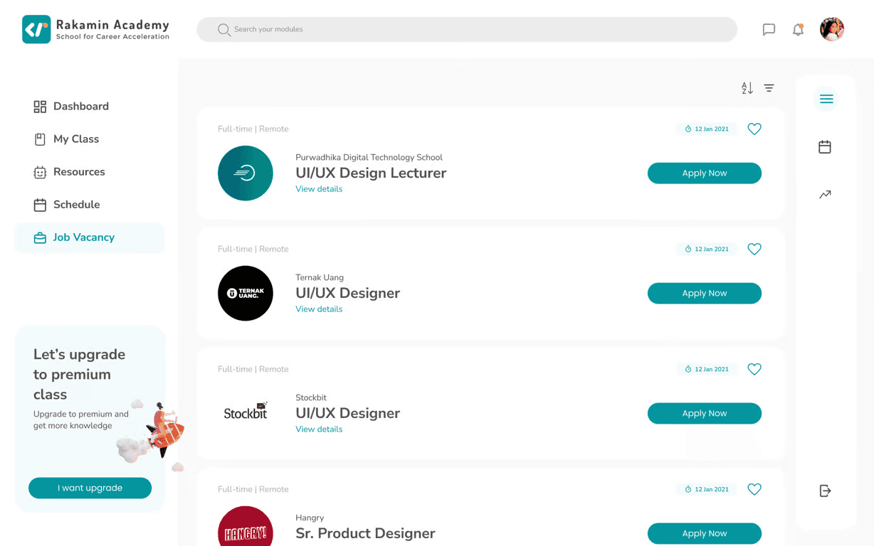 Apart from that, there is a bonus page where students can access available job vacancies according to the field they are studying. As a student and career shifter too, this page will be very useful in my opinion, because it will increase my enthusiasm for learning and completing the assignments given in class so that I can immediately apply for existing jobs.