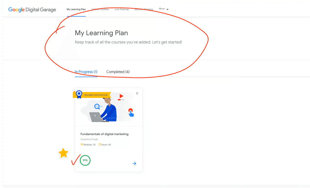 From Google Digital Garage, as a student I feel helped by the progress of my learning in the classes I take when I enter the dashboard.