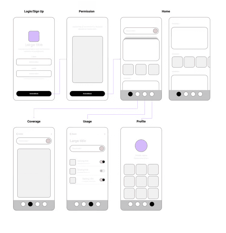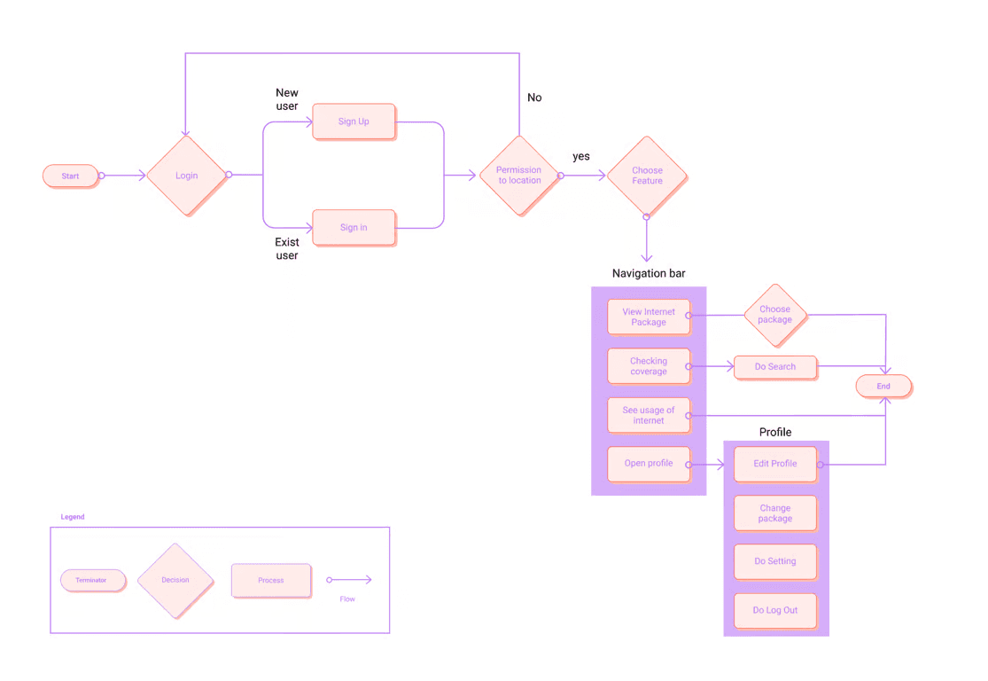 On the main screen, users will immediately be able to set the desired internet package options. From userflow, I translated it into wireflow with a picture like this: